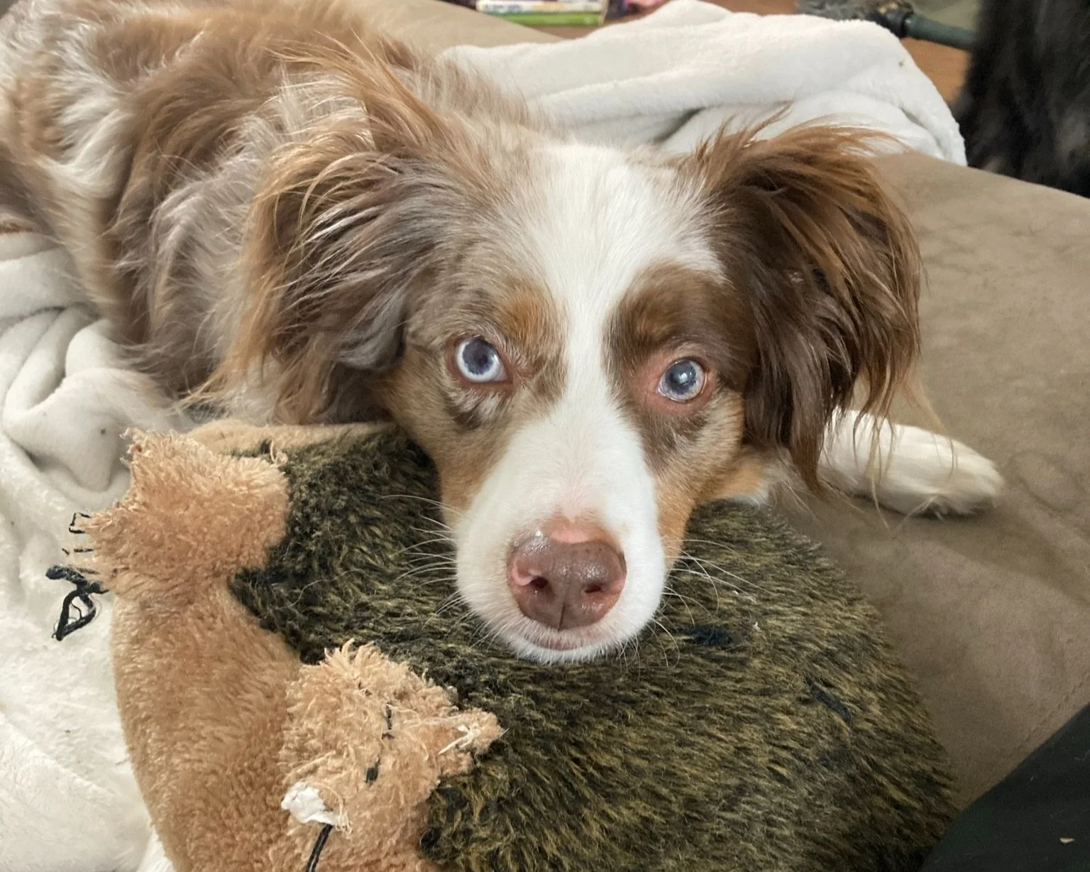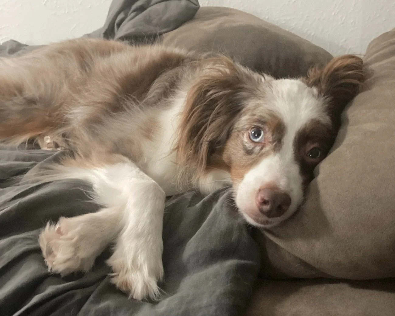 Zippy is a crazy Miniature American Shepherd. He has his quirks, but he’s very loveable anyways, especially with those adorable different colored eyes!